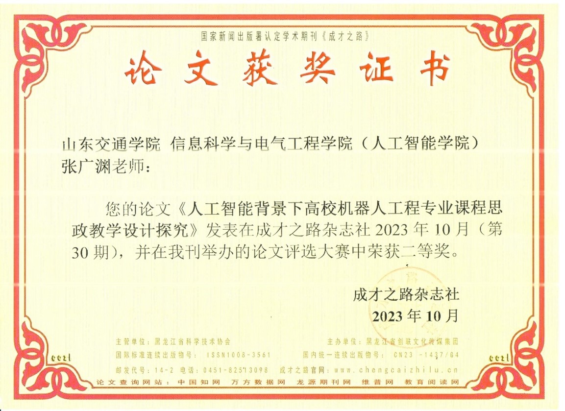 4.8人工智能背景下高校机器人工程专业课程思政教学设计探究-成才之路杂志社论文评选大赛二等奖